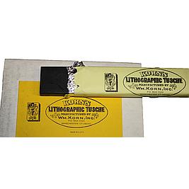 Korn zuurbestendig tekenkrijt, tablet vorm, wordt samen met korn lithografische inkt gebruikt voor het bewerken van zijdegaas bij zeefdrukken.