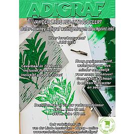Adigraf wateroplosbare blokdrukinkten zijn briljante kleuren speciaal ontwikkeld voor alle hogedruktechnieken, waaronder blok-, houtsnede- en linodruk. De sterk gepigmenteerde Adigraf Water Soluble Block Printing-inkten drogen veel sneller dan op olie gebaseerde alternatieven, zijn bovendien gemakkelijk en veilig in gebruik en kunnen eenvoudig worden gereinigd met water en zeep.