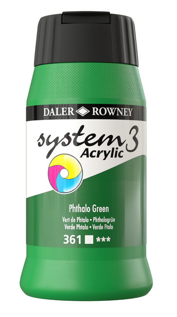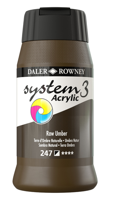 Sinds de introductie van System 3 acryl in 1987, zijn de kleuren met succes gebruikt om papier, hout, canvas en oneffen oppervlakken zoals gips of ruw metselwerk versieren. Tests op betonnen platen tonen de superieure duurzaamheid van System 3 ten opzichte van andere acrylverf in alle weersomstandigheden. Systeem 3 is veelvuldig gebruikt voor het schilderen van muurschilderingen op bijvoorbeeld scholen.