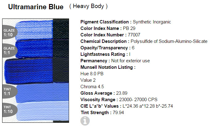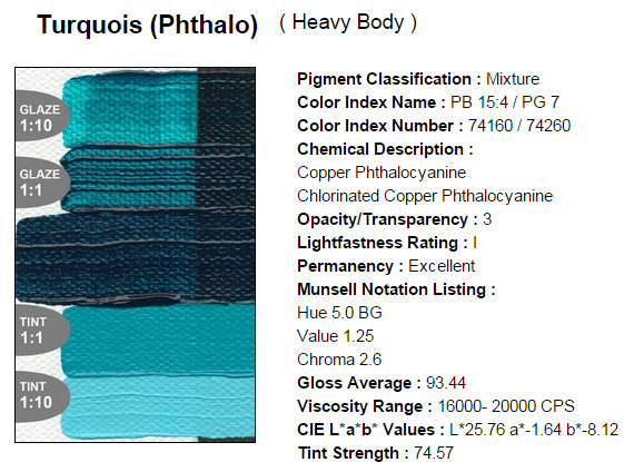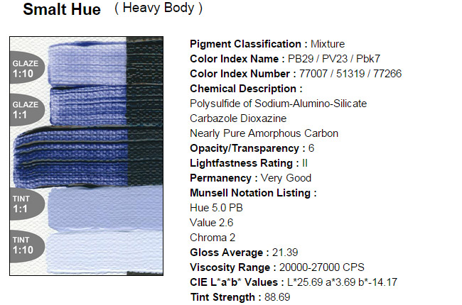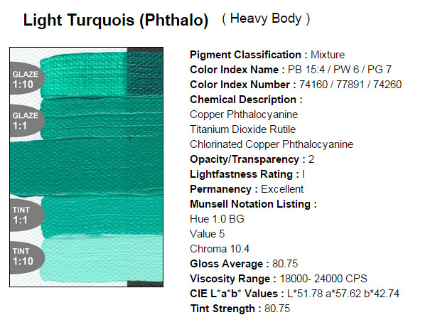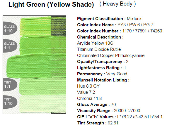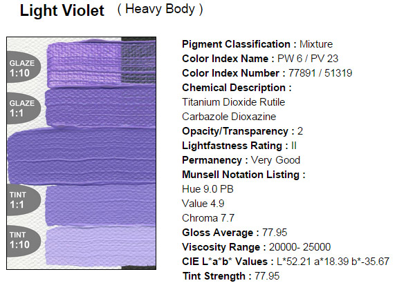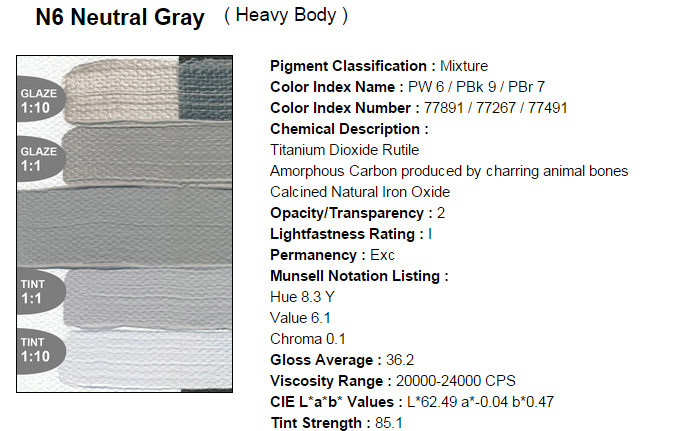 Elke Heavy Body kleurformule weerspiegelt de kwaliteit van haar pigment. Kleuren die een hogere pigment lading tolereren wanneer ze droog zijn hebben een meer ondoorzichtige, matte afwerking. Kleuren die meer reactief zijn en niet toestaan dat een hoge pigment lading mengt, hebben de neiging om tot een meer glanzende en transparante afwerking op te drogen. Omdat Heavy Body kleuren geen matteermiddelen bevatten, zal de glans van iedere kleur anders zijn.