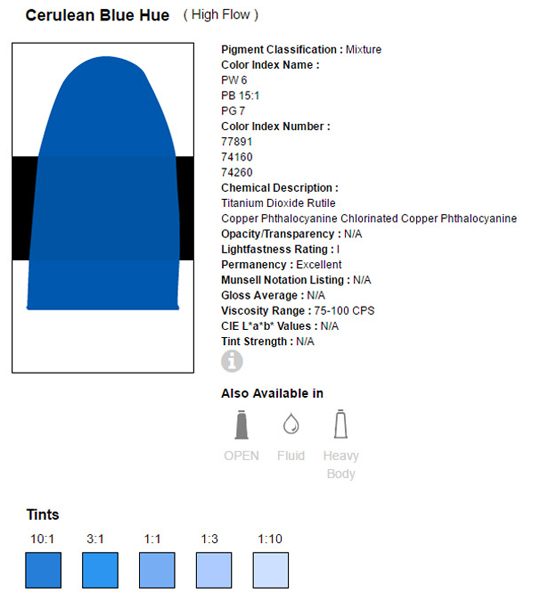 | 10718526 | GOLDEN HF-ACR.30ML. 8526/3 CERULEAN BLUE (HUE) | € 10,02