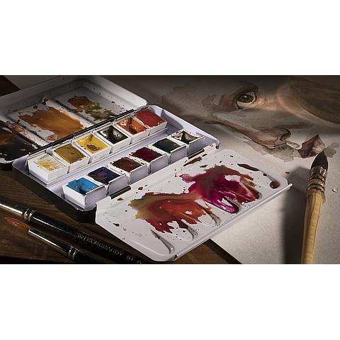 Met in totaal 120 kleuren biedt Rembrandt een veelzijdig palet professionele kwaliteit aquarelverf. De kleuren zijn zoveel mogelijk geformuleerd op basis van slechts één pigment (mono gepiggmenteerd). Dankzij die pure receptuur zijn de kleuren bijzonder briljant en eenvoudig te vermengen tot heldere en schone mengkleuren. Zie de kleurkaart voor pigmentering.