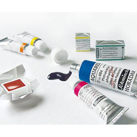 110 kleuren vertegenwoord het HORADAM ® Aquarell kleuren gamma. 69 kleuren zijn geformuleerd met slechts 1 pigment (mono pigmentering), het ideale concept voor professionele schilder en voor het mengen van kleuren. Veel van de nieuwe artist kwaliteit pigmenten zijn onderzocht en getest om te voldoen aan de hoogste kwaliteitsstandaard met betrekking tot stabiliteit, fijnheid en lichtechtheid.
