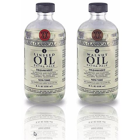Olieverf wordt gemaakt door een pigment te mengen met een drogende olie als bindmiddel. De chelsea lijn- en walnootolie zijn ideaal om olieverf mee te maken.