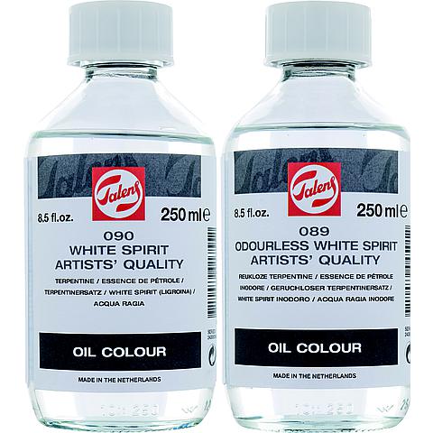 Reukloze terpentine en white spirit, worden gebruikt voor het verdunnen van olieverf en het reinigen van materialen zoals penselen.