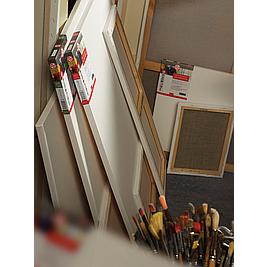 Compleet met beukenhouten spieën voor het naspannen van het doek