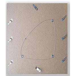 De lijsten worden standaard geleverd met een wit achterblad en board. Met aan de achterzijde de bekende 3-punts-ophang die u kent van ons.