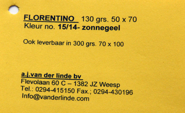 Tweezijdig, houtvrij door- en door gekleurd. Glad oppervlak. In 40 redelijk tot goede lichtechte kleuren + goud en zilver.