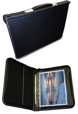 Klassieke Designers portfolio, zwarte kunstof ringbinder met een zwaar ringmechaniek van binnen. Tussen de ringen is de inleg met metaal versterkt voor stabiliteit van de map.