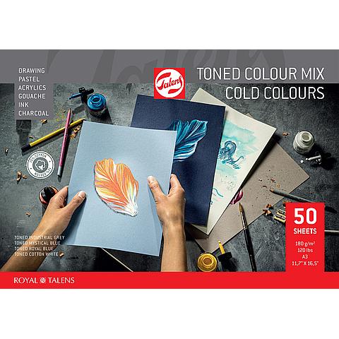 7359071 | TALENS TONED COLOUR MIX COLD 180GRS/29,7X42CM 50V Bevat de kleuren: Mystical Blue, Royal Blue, Cotton White en Industrial Grey. |