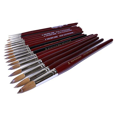 Zuiver rood marterhaar spits rondgezet, naadloos vernikkelde huls, korte gelakte steel.