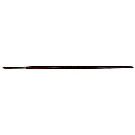 Letterpenseel, zuiver marterhaar rond en spits gezet in naadloos vernikkelde huls op lang gelakte steel