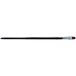 Olieverf penseel, zuiver marterhaar platgezet in naadloos vernikkelde huls op lange gelakte steel.