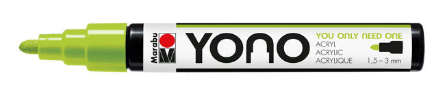 De YONO acrylmarker van Marabu is een dekkende marker op waterbasis die op bijna elk oppervlak werkt. Canvas, papier, beton, glas, keramiek, hout, kunststof, leer, stof etc. De zoektocht naar de juiste marker is eindelijk voorbij. Op absorberende materialen is de YONO permanent. Op gladde, niet-absorberende oppervlakken veeg je de YONO er weer vanaf en kunt u weer wat nieuws creëren. Geschikt voor lichte en donkere ondergronden. De YONO is verkrijgbaar in verschillende punt diktes, 28 verschillende kleuren, waaronder 3 metallic en 4 neonkleuren en sets.