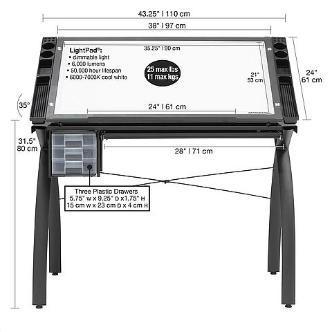 Deze tafel is ideaal voor tatoo artiesten en illustratoren, maar ook voor tekenen, kalligraferen en scrapbooking bied deze tafel een uitkomst.